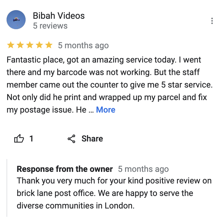 Brick Lane Post Office, 160A Brick Lane, London, E1 6RU
